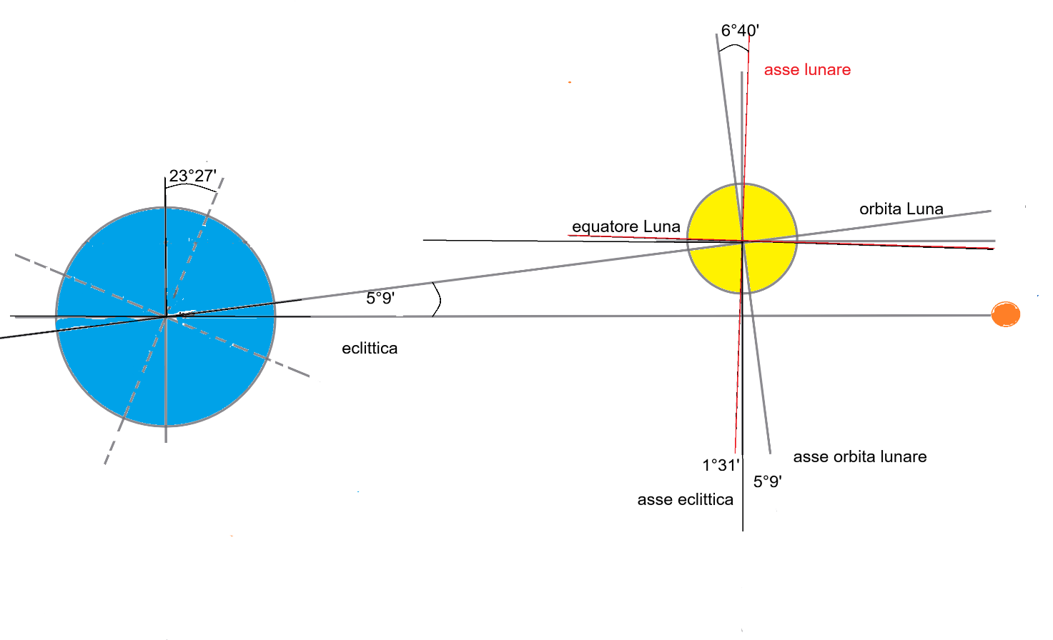 (1) Orbita ed eclittica sono nomi che contraddistinguono il percorso di un astro visto da punti di vista differenti e a volte, per errore, possono essere confusi. Tuttavia, bisogna precisare che la prima si riferisce ad un percorso reale, mentre la seconda descrive un tragitto apparente (ad es. quello del Sole che durante l’anno si muove sull’eclittica e di giorno sorge e tramonta, ma in realtà è immobile rispetto alla Terra) che spesso in astronomia è più facile da studiare.