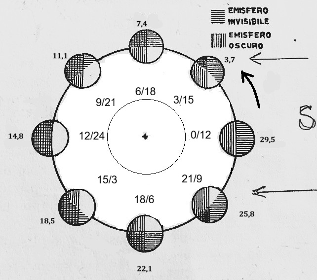 22) vedi il paragrafo Giorno lunare la differenza tra giorno lunare e giorno solare e relativo ritardo